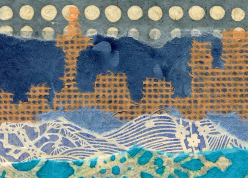 These cards were lovingly hand-made in our kitchen using scraps of paper to create collages that represent the mosaic that is Canada.